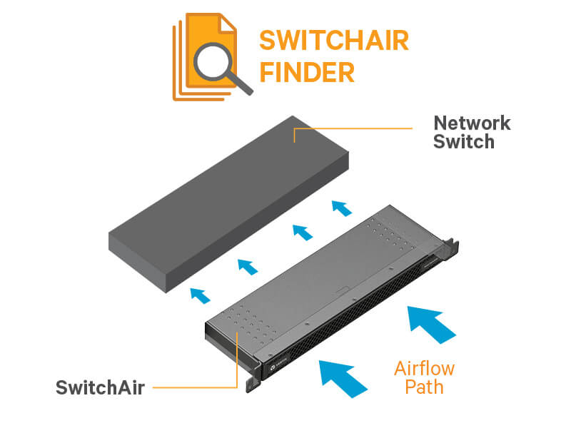 Switchair 1u network switch cooling effective cool air delivery for rear rack mounted 1u switches with rear air intake and front port side exhaust.