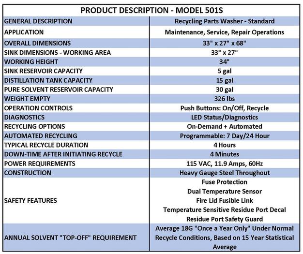 System one parts washer model 501.
