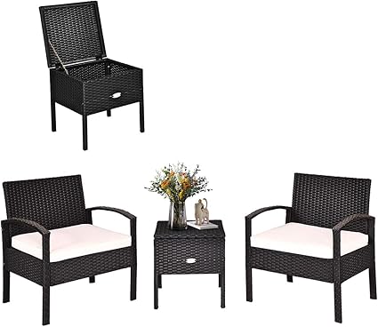 Tangkula patio furniture set 3 piece outdoor wicker rattan conversation set with coffee table chairs thick cushions suitable for patio garden lawn backyard pool visit the tangkula store.